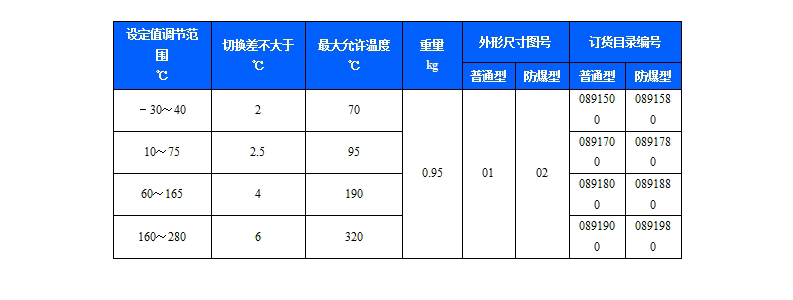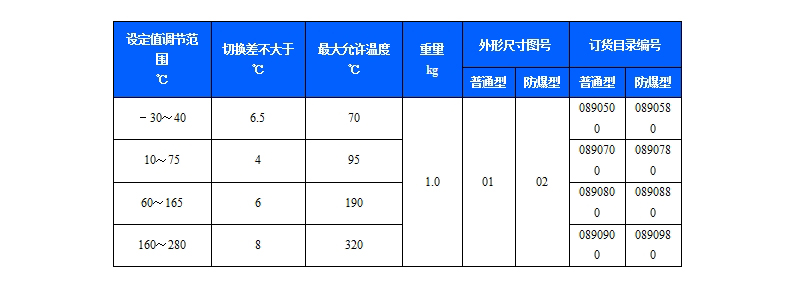 541/7T溫度控制器采用帶毛細管溫包式傳感器,可用于流動的中性氣體和液體介質,如果介質為腐蝕性,安裝時可選用不銹鋼溫包保護套套在銅質溫包外(見附件)。541/7T溫度控制器的設定值可調,調節范圍-30~280℃。